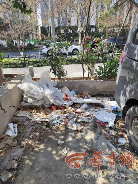 垃圾压缩站对面◈ღ◈✿✿,沿街餐饮门店较多◈ღ◈✿✿,自去年8月华商报报道后◈ღ◈✿✿,现该处地面◈ღ◈✿✿、绿化带内卫生已有很大改善◈ღ◈✿✿。